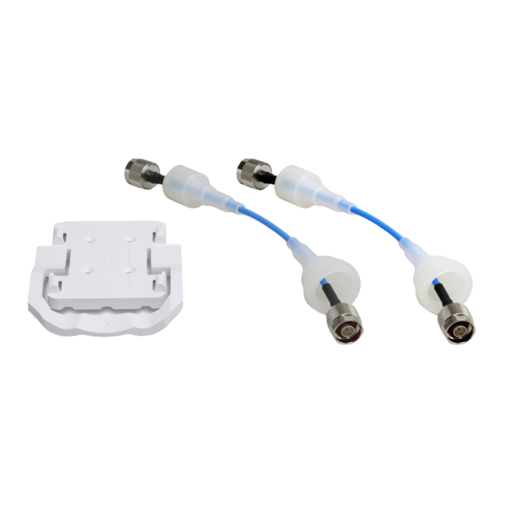Для ещё большей гибкости при использовании РРС airFiber 11, Ubiquiti предлагает специальный набор, который позволит подключить ваше устройство к большинству антенн 11 ГГц. В комплект входят два радиочастотных кабеля и крепление, обеспечивающее надёжную фиксацию airFiber 11 на задней панели антенны.